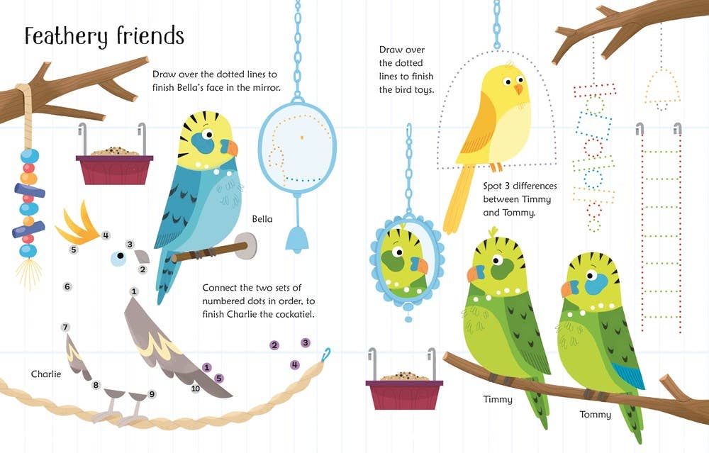 Children will have fun using the wipe-clean pen as they solve pet-themed mazes, join dots, spot differences and trace over pictures and numbers. At the same time, they will be practising the vital pen-control skills they need for learning to write letters and numbers. The ink easily rubs off the shiny pages to make the activities ready to be done time and time again.