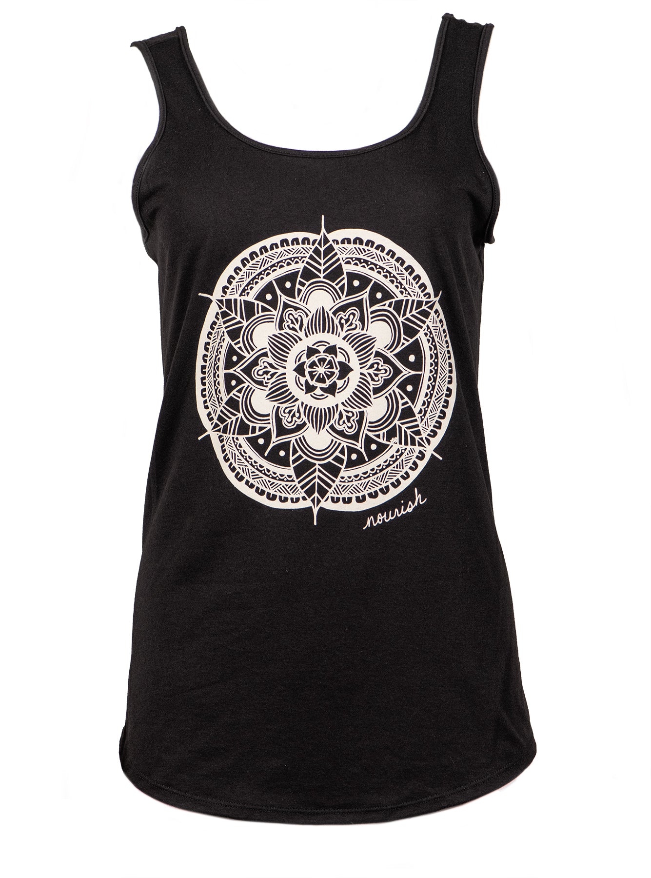Women's Relaxed Black Mandala Tank (provides 10 meals)