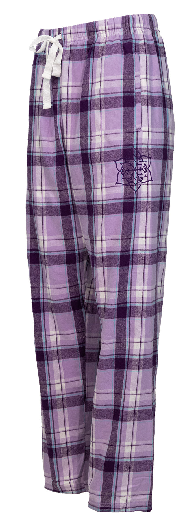 Comfy, cozy flannel pants with an adjustable twill tape tie and POCKETS!! A flower inspired mandala near the pocket.