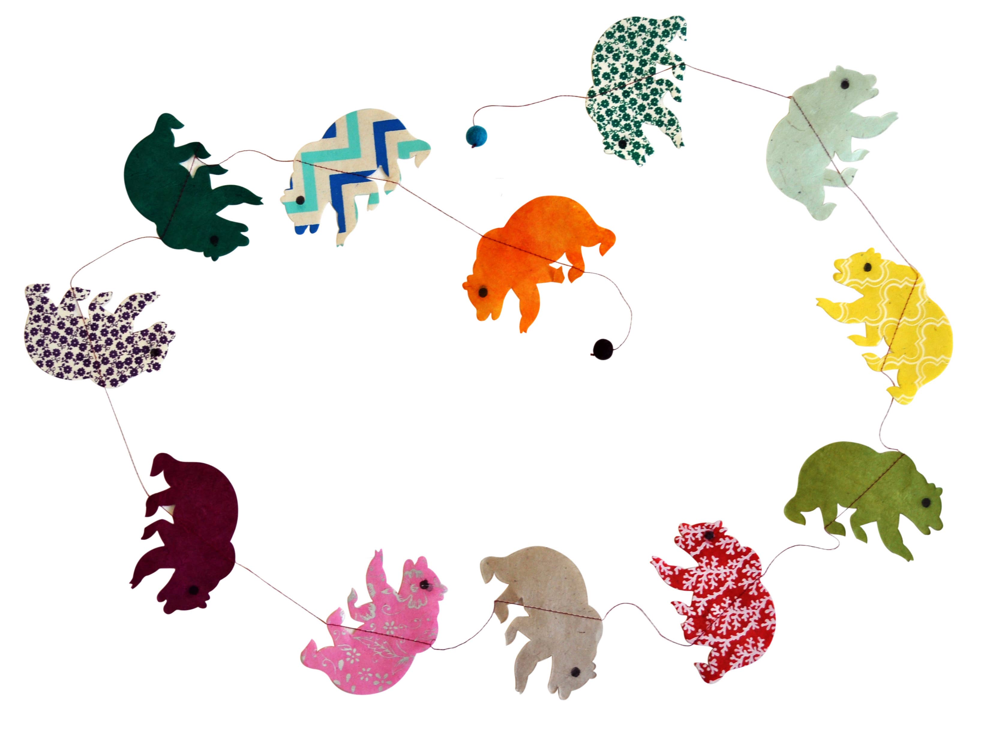 Assorted patterned paper is die cut and then stitched together to create beautiful paper garlands. These garlands are fairly traded products made by women-cooperatives using local raw materials and scrap papers.