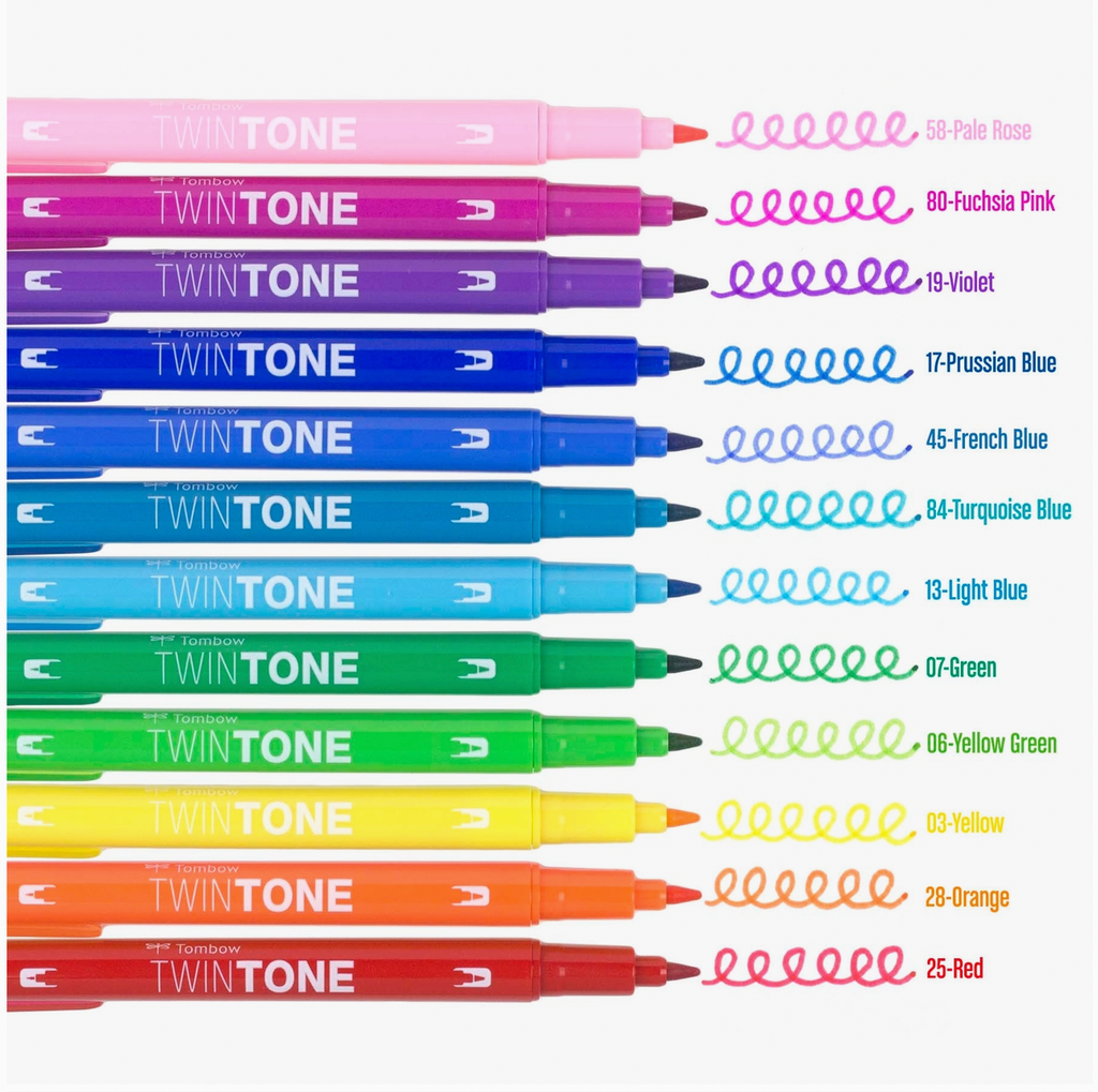 Colors Included: 58 Pale Rose, 80 Fuchsia Pink, 19 Violet, 17 Prussian Blue, 45 French Blue, 84 Turquoise Blue, 13 Light Blue, 07 Green, 06 Yellow Green, 03 Yellow, 28 Orange, 25 Red.