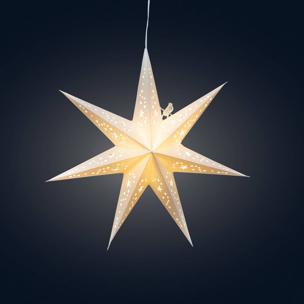 Twinkle Star ~ 7 Pointer, 9", White Paper Star Lantern Light (provides 8 meals for kids)