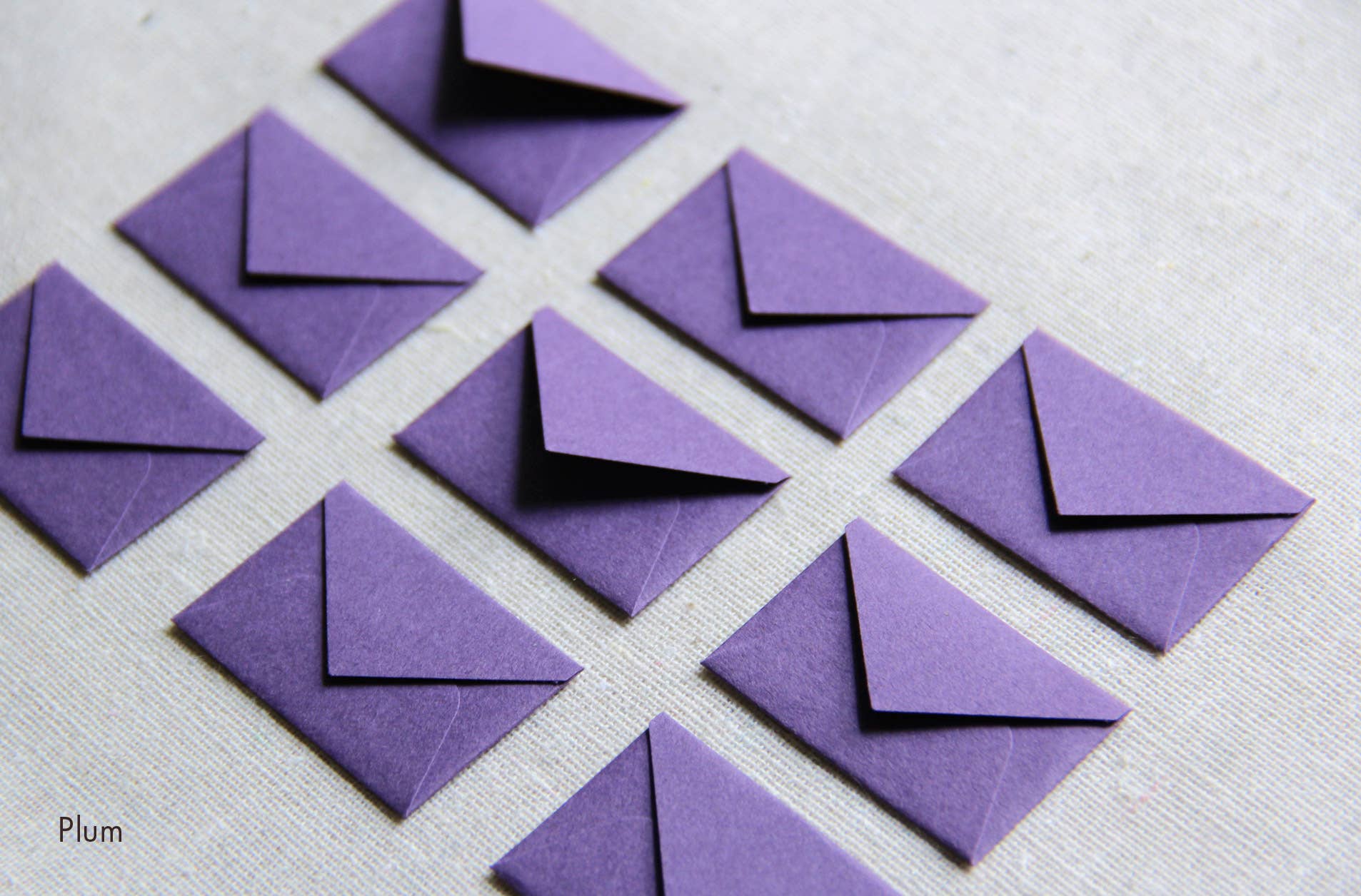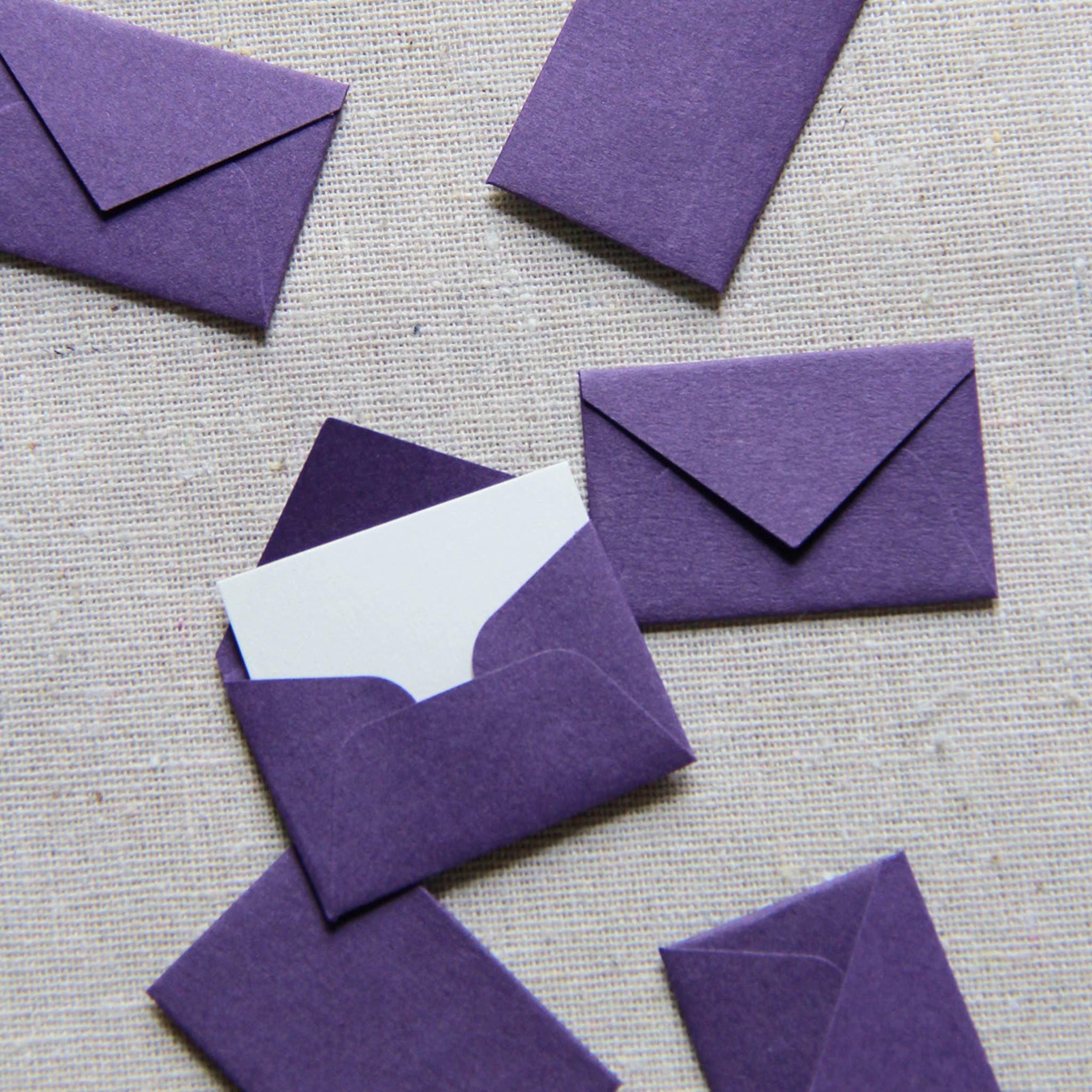 Set of 12 tiny envelopes, hand-assembled from purple acid-free paper.