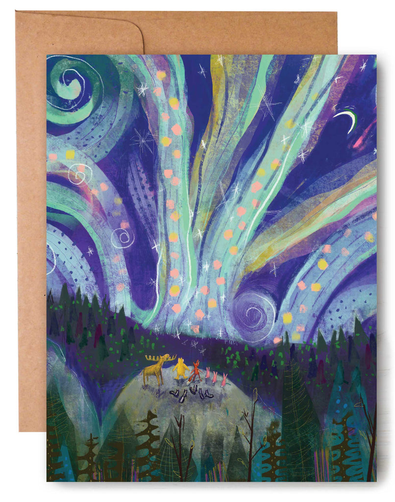 Fox and Bear with Aurora Borealis - Blank Card (provides 2 meals)