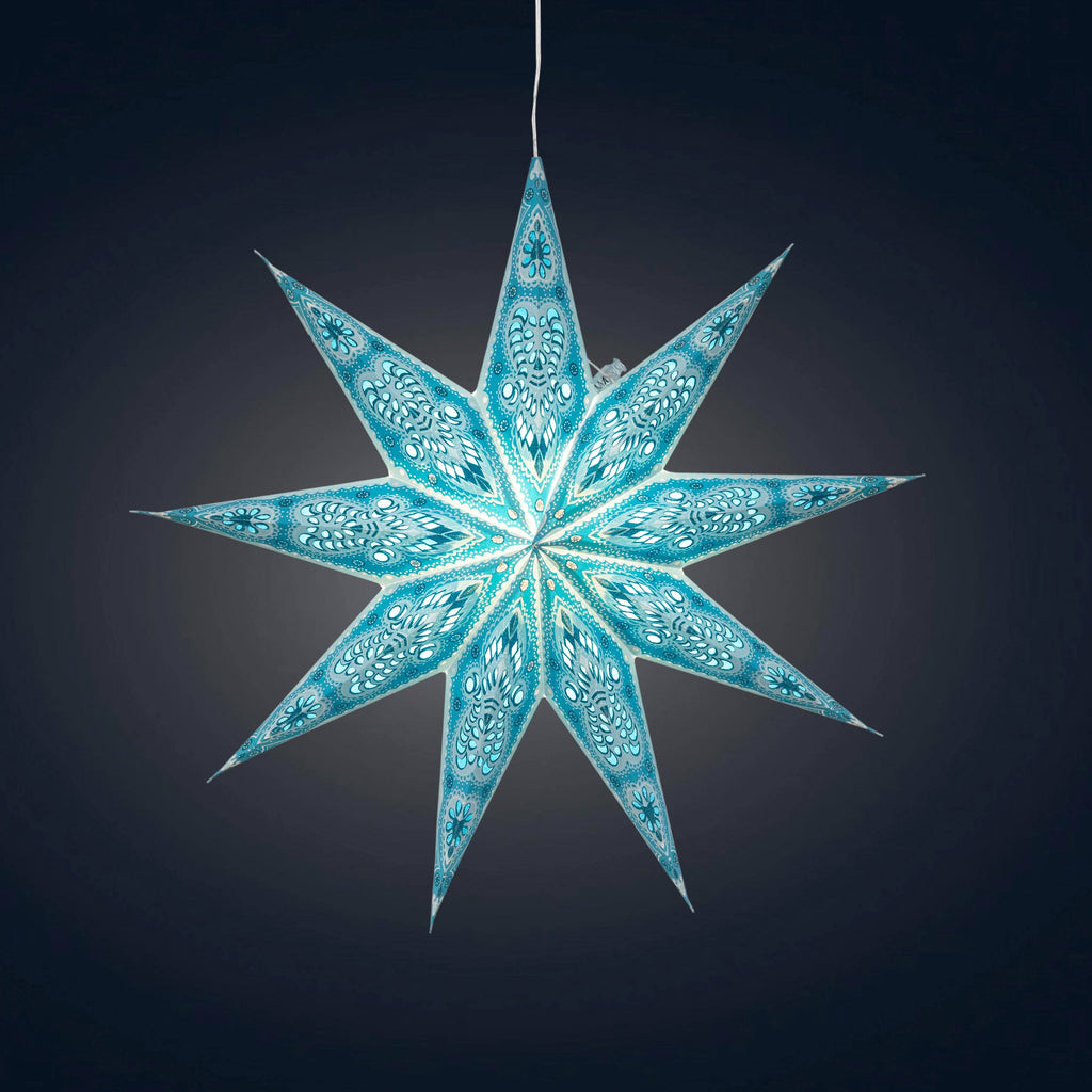 Phoenix ~ 9 Pointer, 17", Turquoise Paper Star Lantern Light (provides 12 meals)