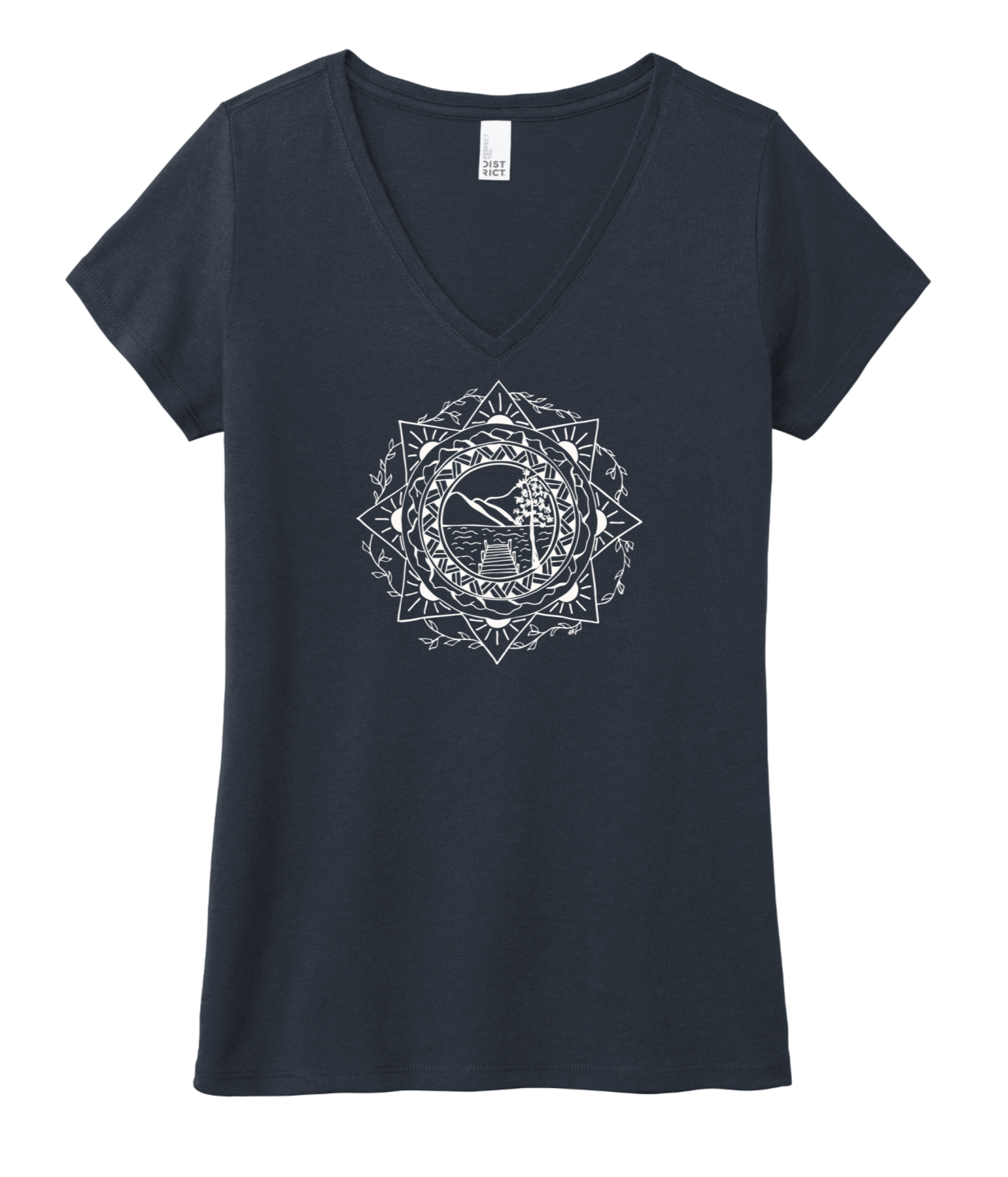Light-weight and super soft t-shirt featuring an original mountain lake design.  Each shirt is hand-screened.  Tri-blend v-neck tee...slightly fitted.  (runs a tad small...if you're not sure which size, we suggest you order up a size)