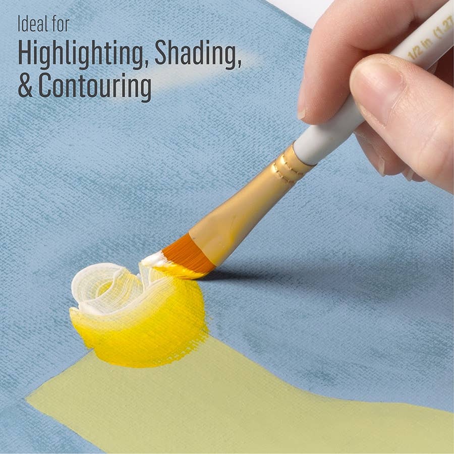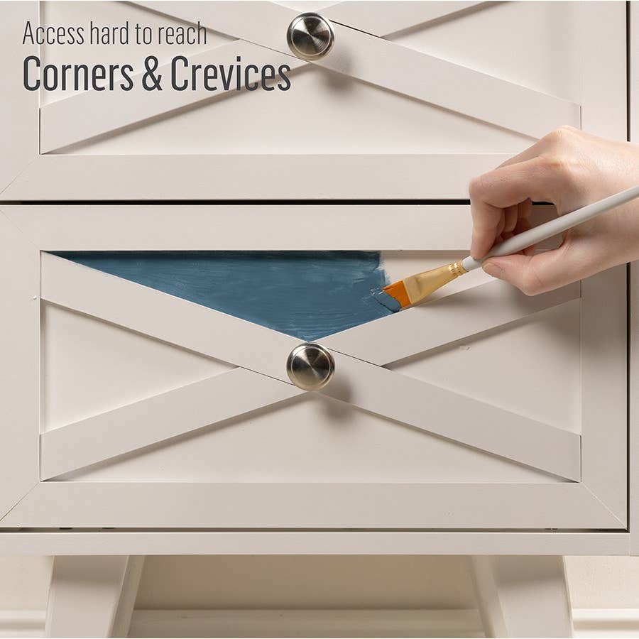 Create flawless straight lines in five different sizes with the 5-piece FolkArt Angle Paint Brush Set. These superior quality paint brushes are perfect for shading and getting into tight corners. Use this set to basecoat, add details, and complete intricate stroke work. Each brush has elegant Gold Taklon bristles for brilliant, smooth coverage. With this set you have everything you need to complete any size arts and crafts project big or small. Upgrade your art supplies with this set of unique paint brushes to fit every need. The 5-piece FolkArt Angle Paint Brush Set is a must-have staple in any painter’s crafting supplies.