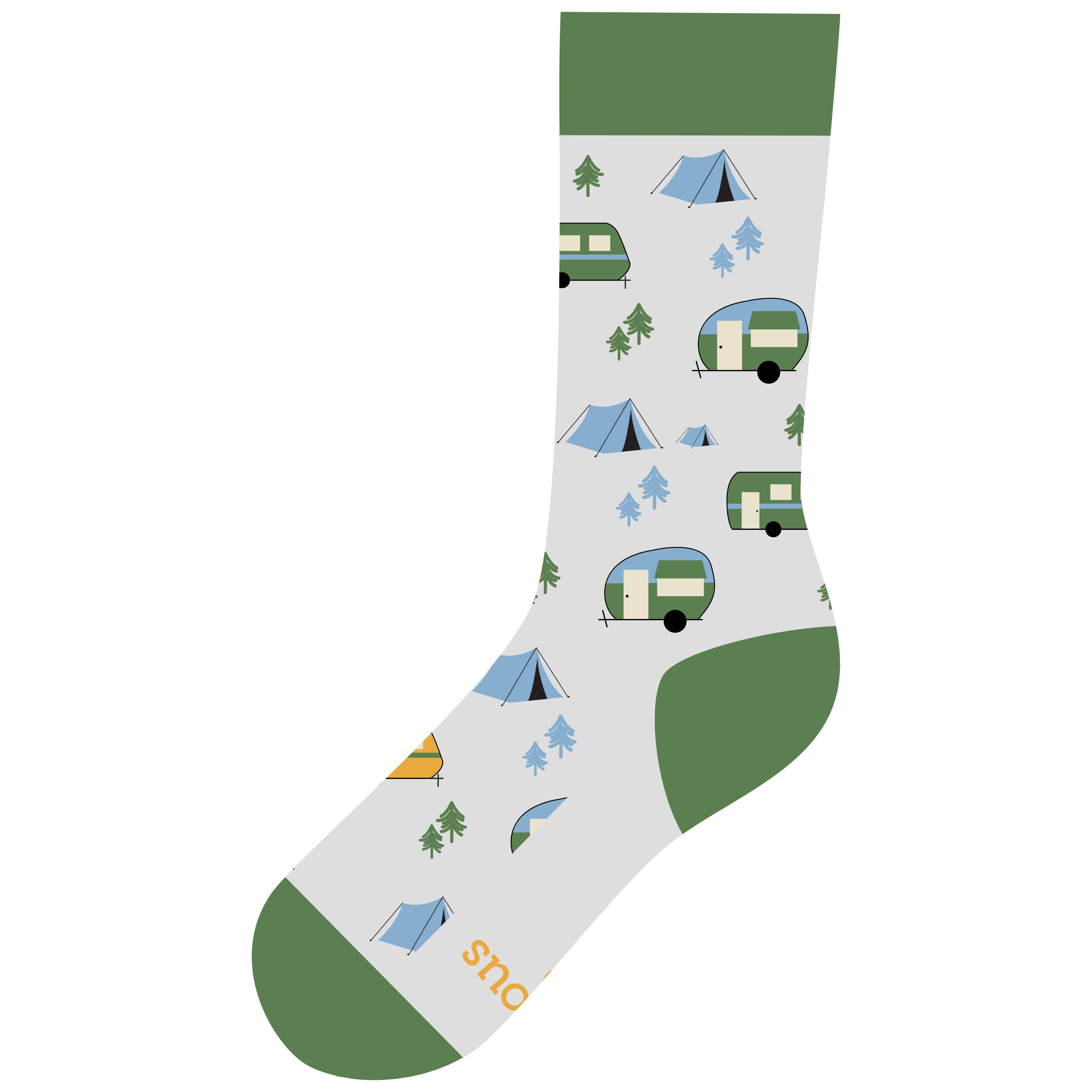 Park the car, pitch the tent, and get a fire going: it’s camping season! This gray pair, decorated with RVs and tents, is for those who love the great outdoors and prefer their foods cooked on wooden sticks.