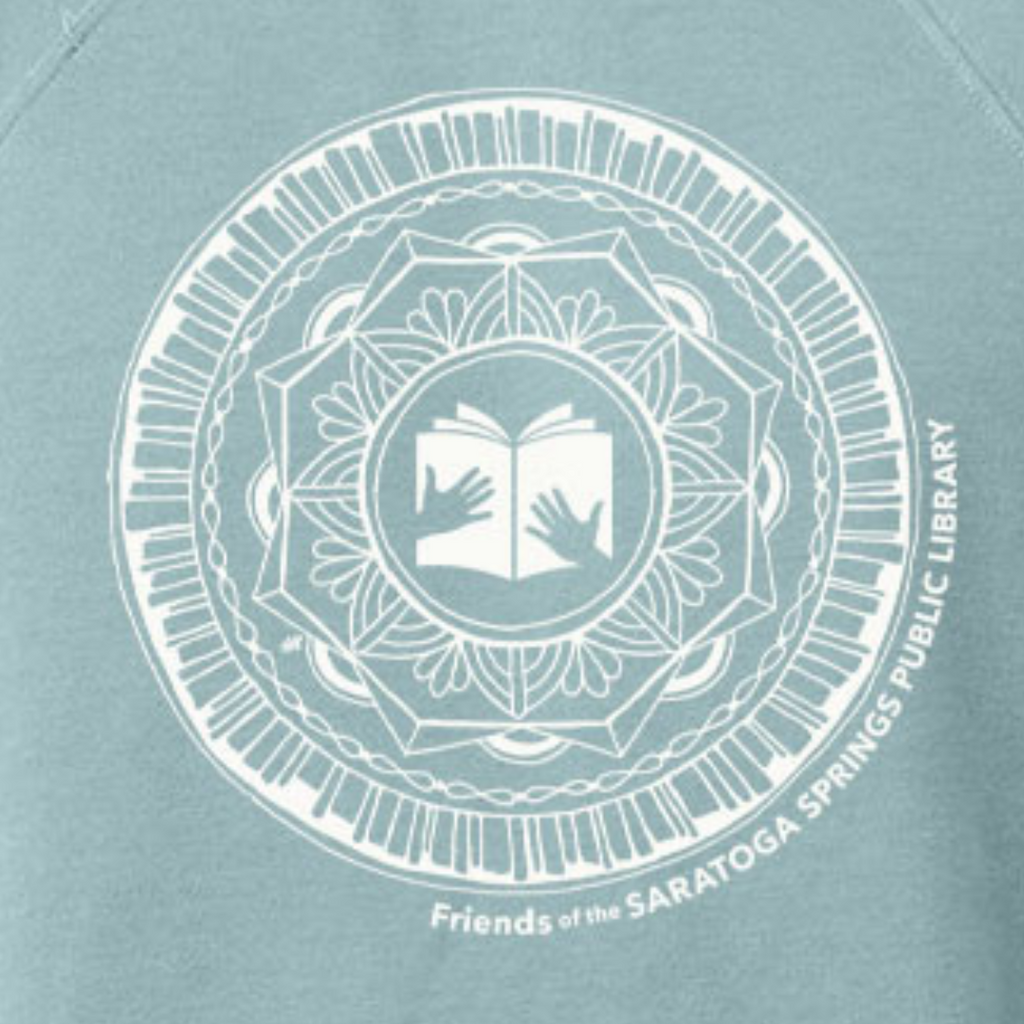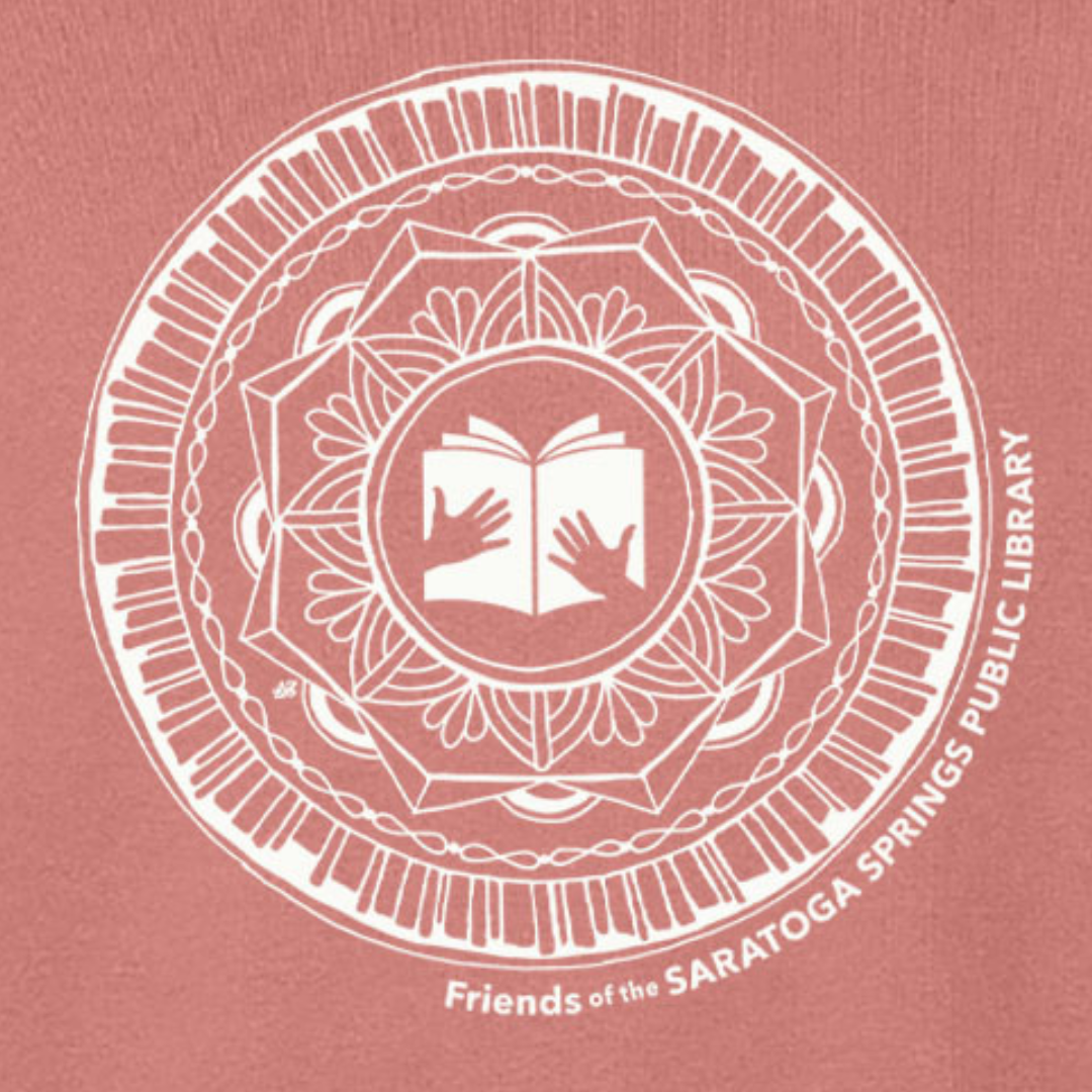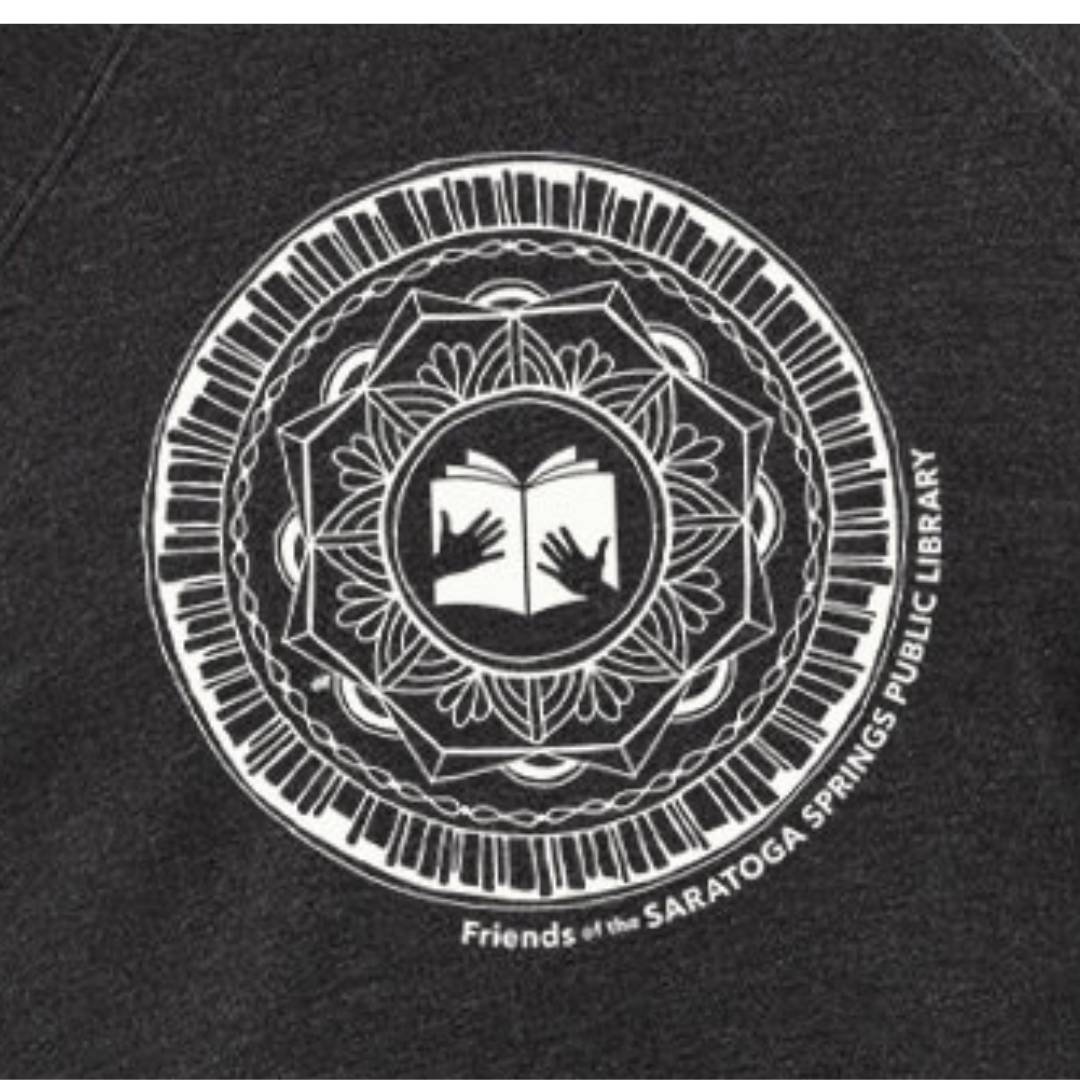 An original mandala design on a cozy hooded sweatshirt... super soft on the inside. A generously sized unisex sweatshirt. Rib knit cuffs and hem. Features an original Friends of Saratoga Springs Public Library design, by local artist, Betsy Seplowitz.