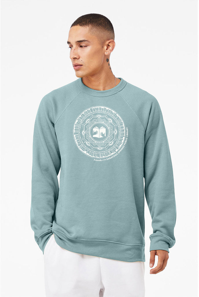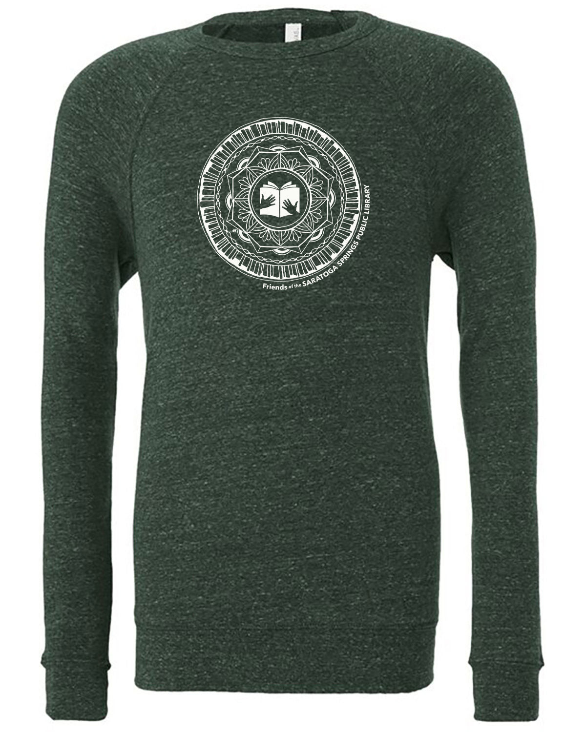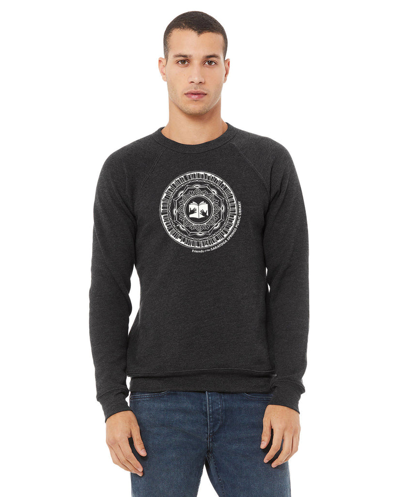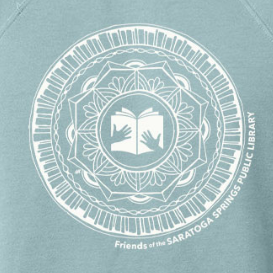 An original mandala design on a cozy hooded sweatshirt... super soft on the inside. A generously sized unisex sweatshirt. Rib knit cuffs and hem. Features an original Friends of Saratoga Springs Public Library design, by local artist, Betsy Seplowitz.