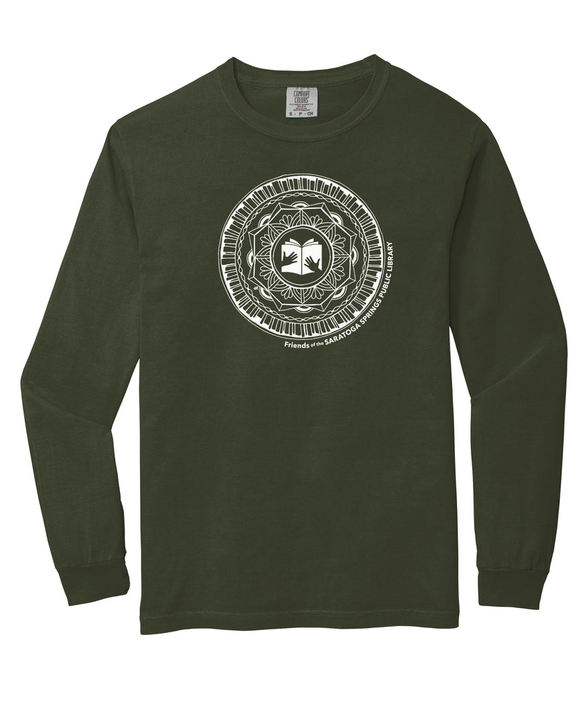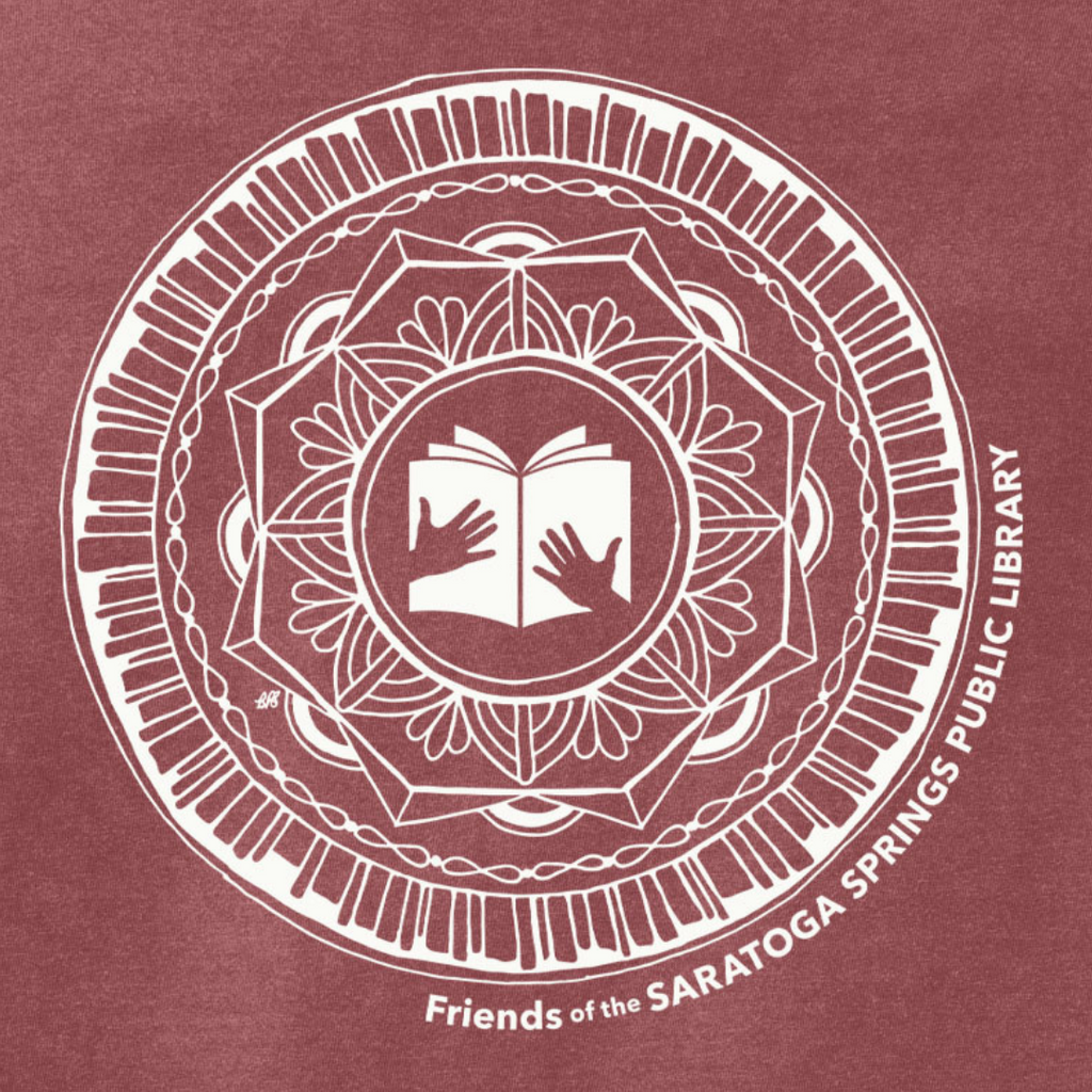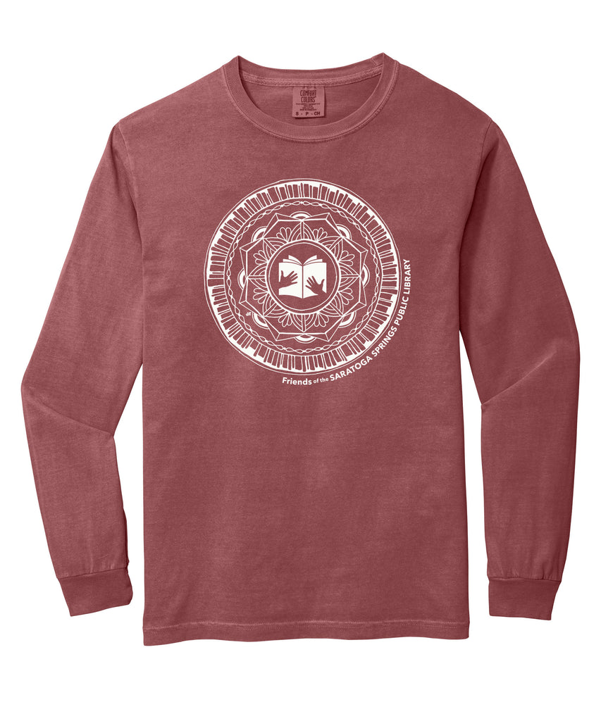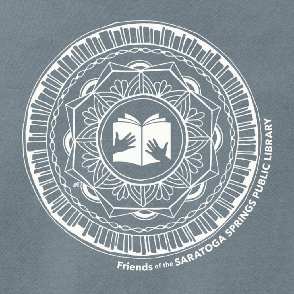 A super-comfy 100% ring-spun cotton tee. Relaxed fit, unisex sizing means there is a shirt for everyone! It’s perfect for layering on a cool afternoon or evening. Features an original Friends of Saratoga Springs Public Library design, by local artist, Betsy Seplowitz.