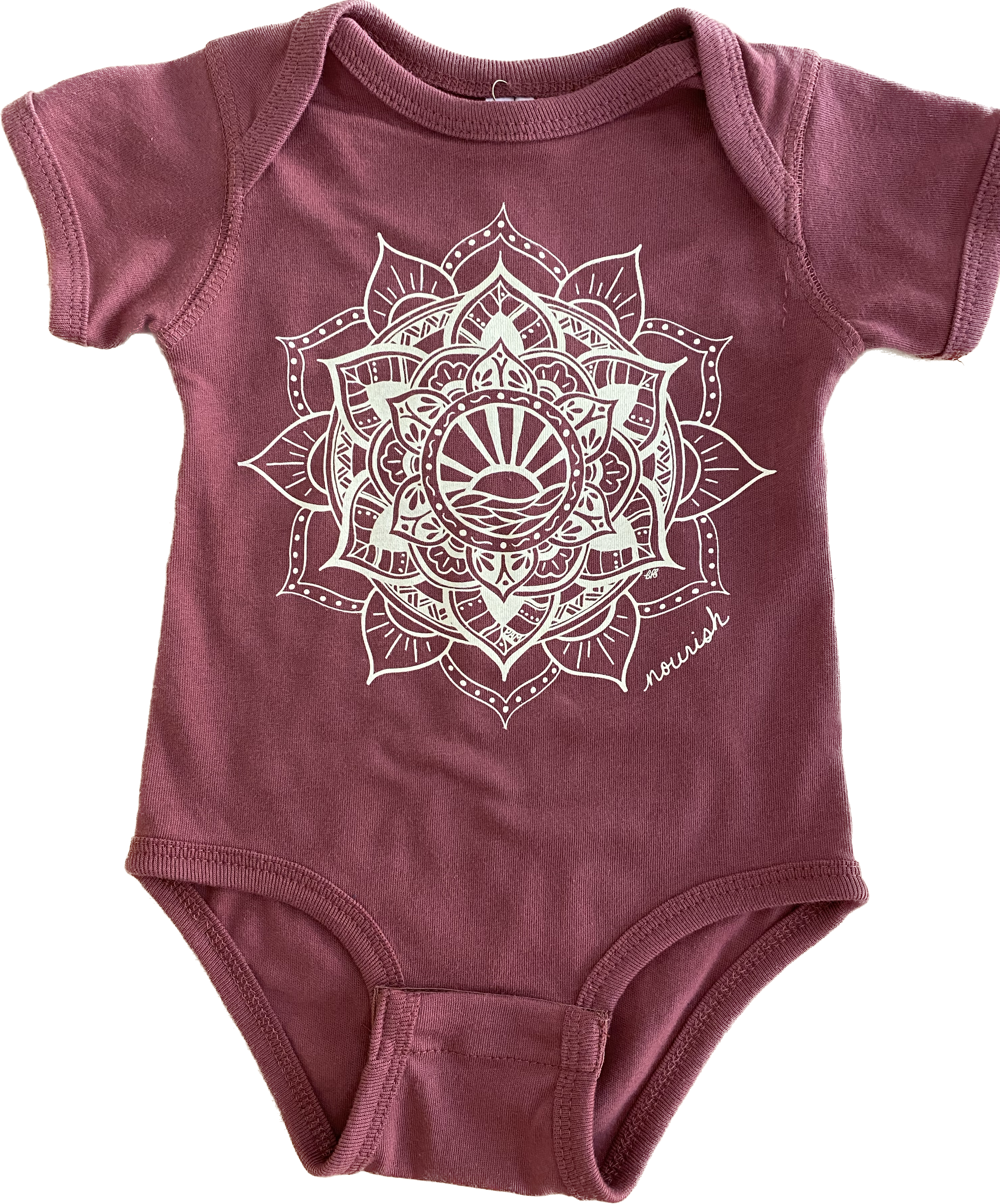 The cutest onesie featuring a sunshine-inspired  mandala.  The mandala is an original, hand-drawn design by Betsy Seplowitz.