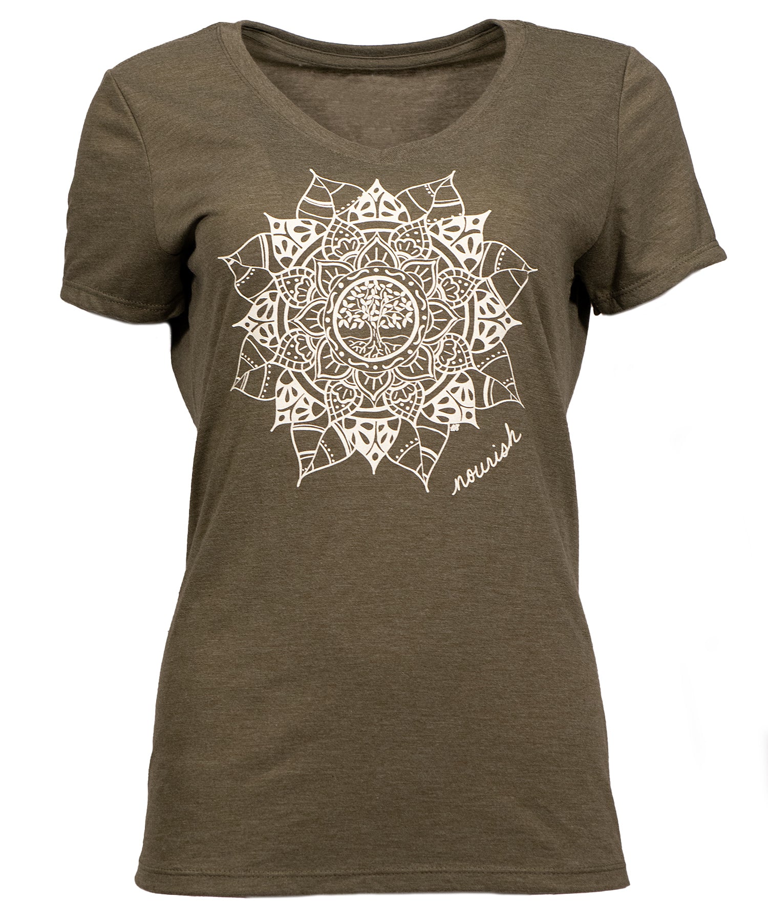 Women's V-neck Tee : Tree Design (provides 12 meals)