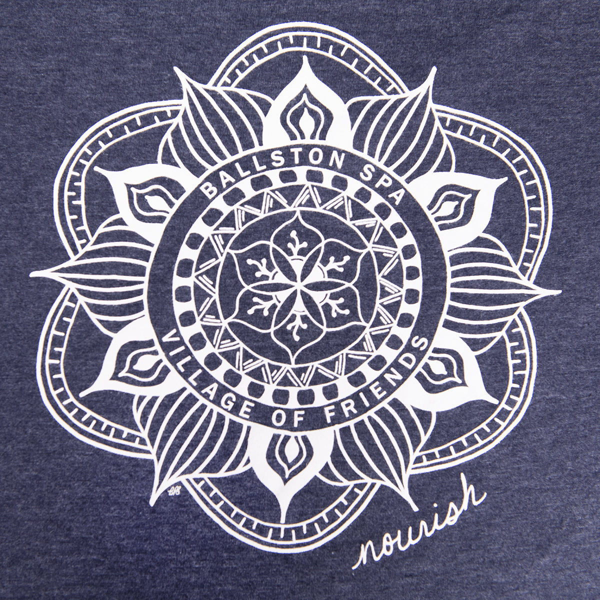 A custom mandala with a subtle shout out to Ballston Spa... Village of Friends. It's super soft and the color goes with everything. You are going to love it! Unisex sizing.