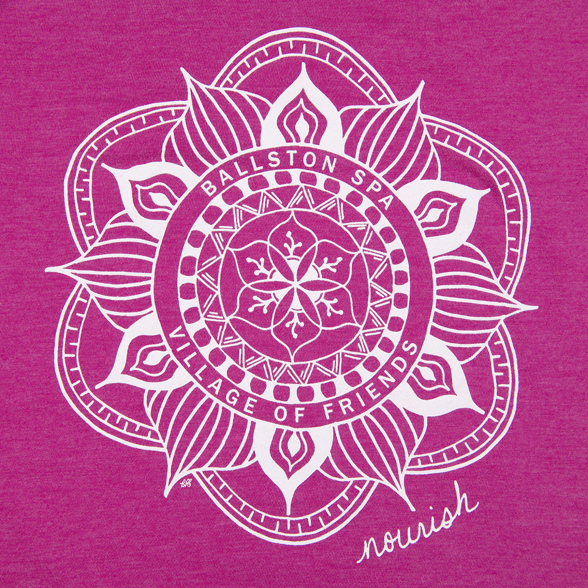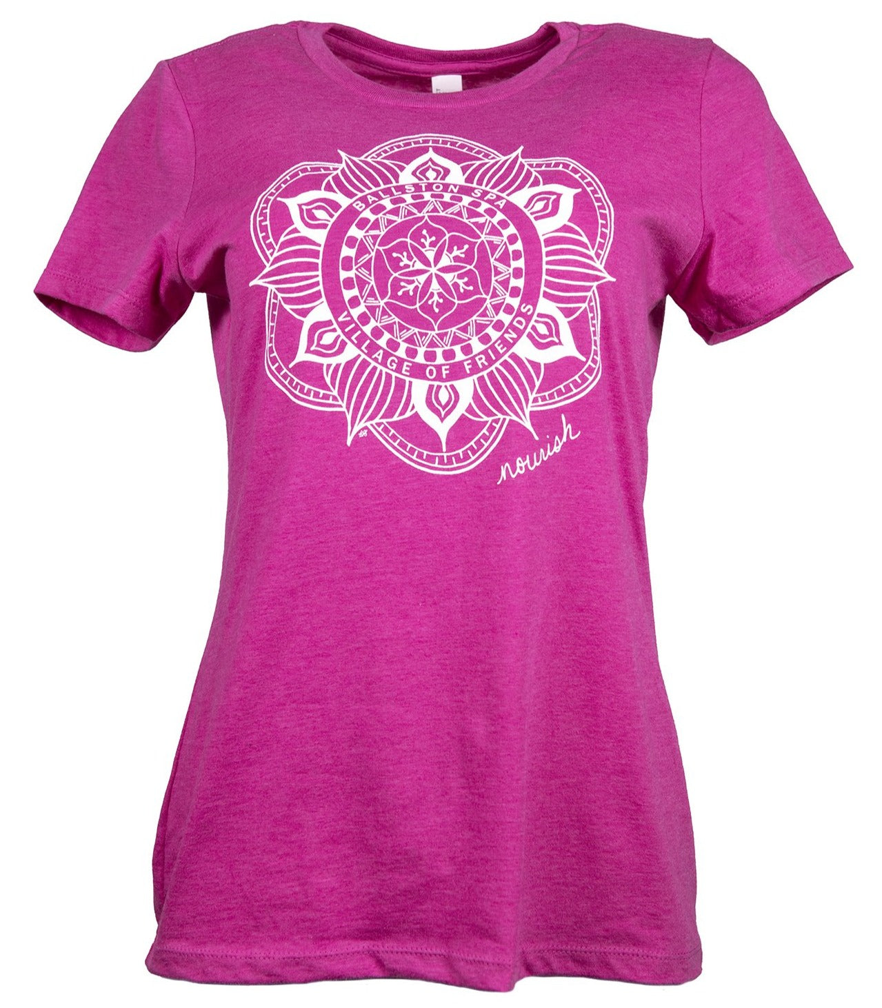 A custom mandala with a subtle shout out to Ballston Spa... Village of Friends. This style is designed specifically for women... with a slightly tapered waist and wider neck opening... but not too tight or clingy!! It's super soft and the color is so cheerful. You are going to love it!