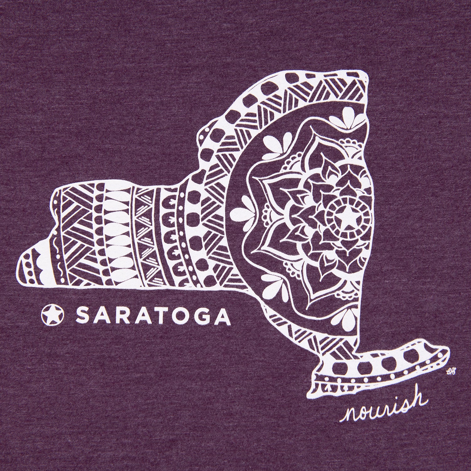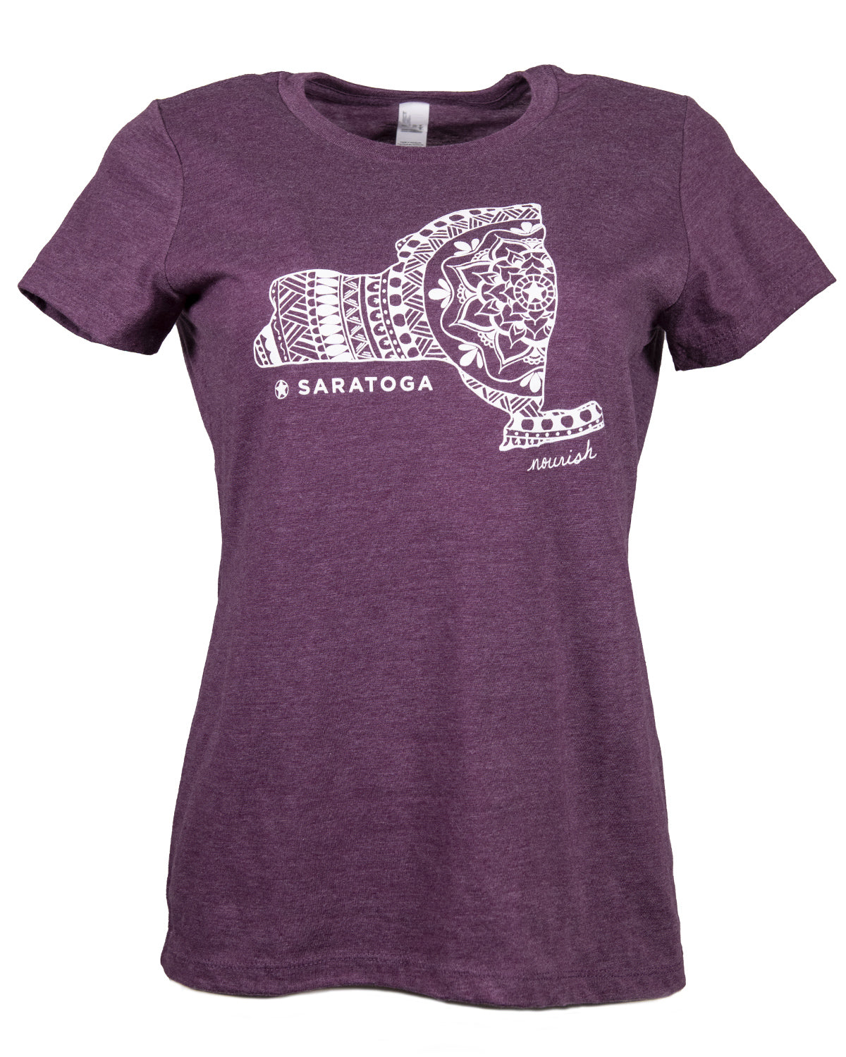 A custom mandala inspired by a New York State Map with Saratoga Springs at the center of the mandala. This style is designed specifically for women... with a slightly tapered waist and wider neck opening... but not too tight or clingy!! It's super soft and the color is perfect. You are going to love it!