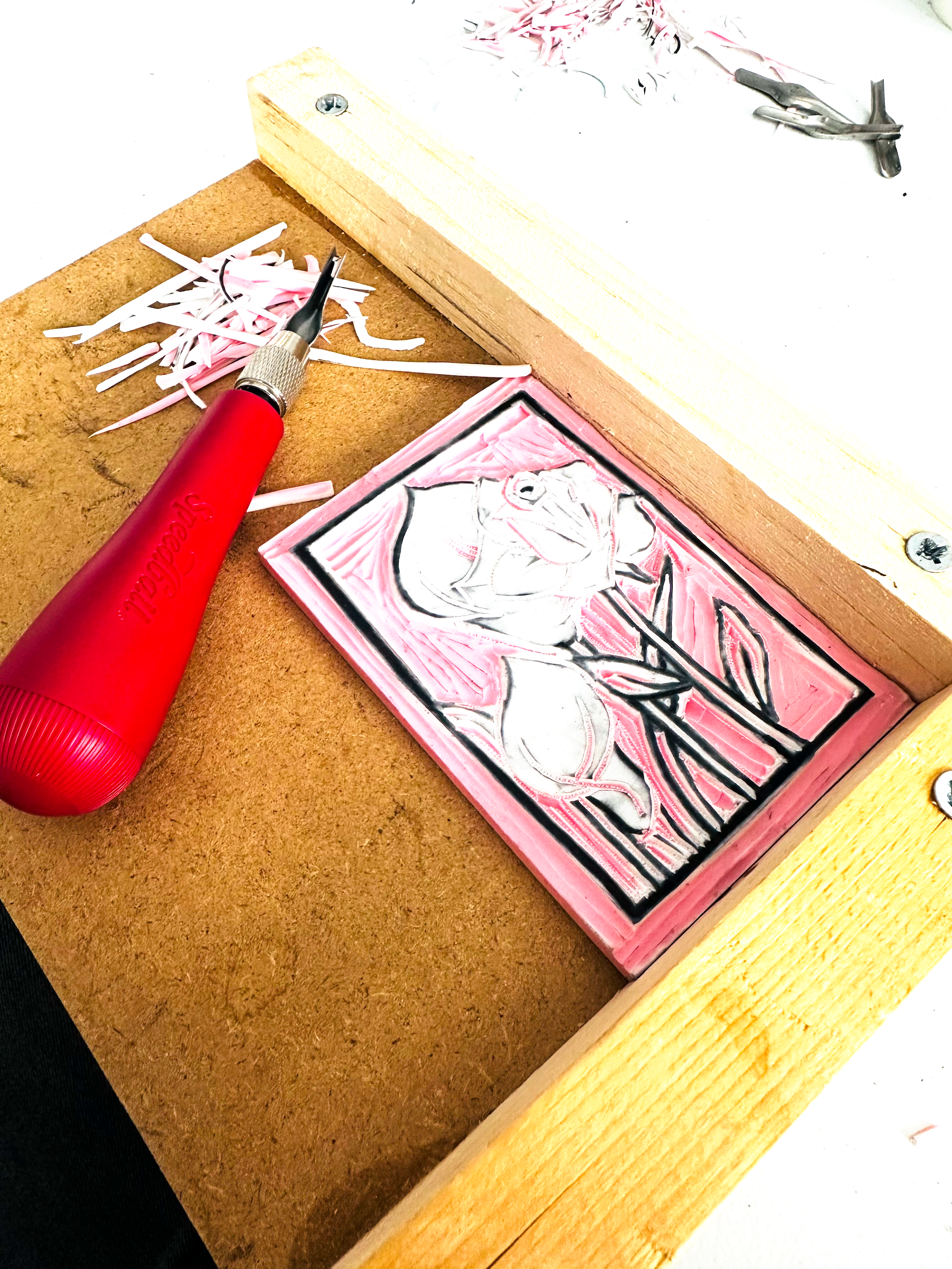 Linocut Stamp Tote Bag Class: 3/22/26 (provides 20 meals)