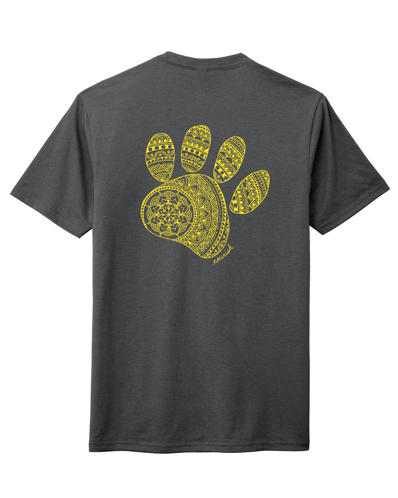 Super-soft, crew neck, unisex sized t-shirt featuring a small Ballston Spa design on the front an original Scottie paw design on the back. Each shirt is hand-screened.
