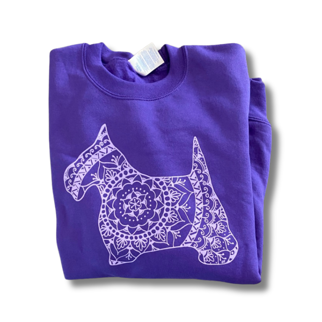 A comfy, cozy, pull-over sweatshirt featuring an original Ballston Spa Scottie design.