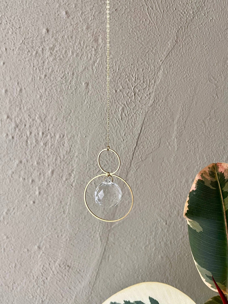 • Materials: 30mm genuine K9 crystal prism, non-tarnish gold plated brass shapes, 14K gold plated chain and jump rings