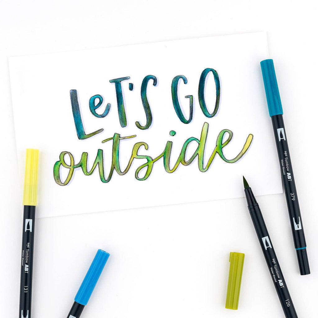 Set of 6 colors. Dual Brush Pens feature flexible brush tip and fine tip in one marker. Brush tip works like a paintbrush to create fine, medium or bold strokes; fine tip gives consistent lines. Dual Brush Pens are ideal for artists and crafters. The water-based ink is blendable and the resilient nylon brush retains its point stroke after stroke. Colors Include: 131 Lemon Lime, 192 Asparagus, 379 Jade Green, 526 True Blue, 603 Periwinkle, N49 Warm Gray8