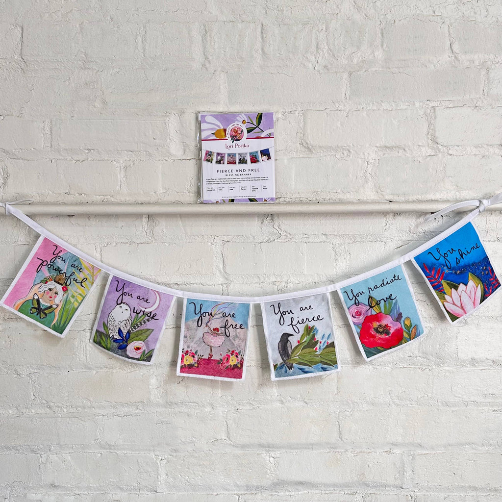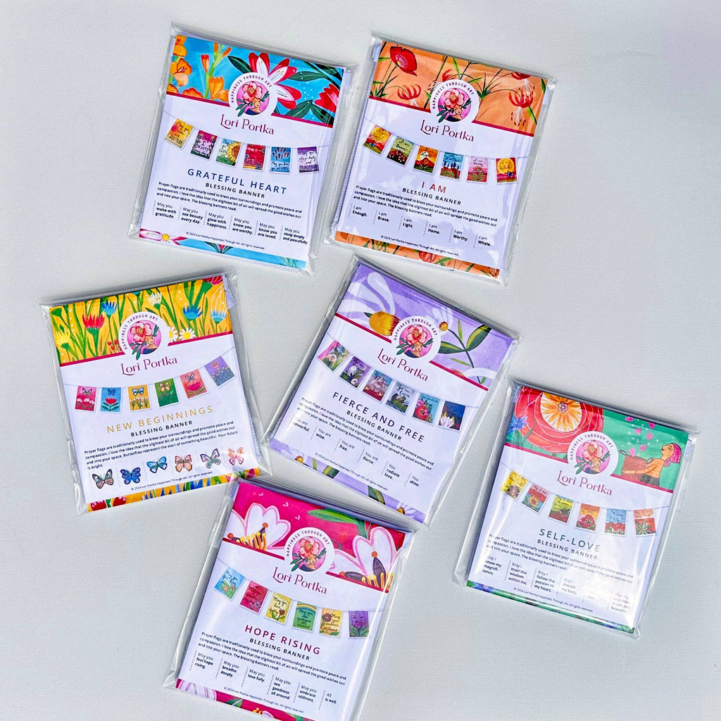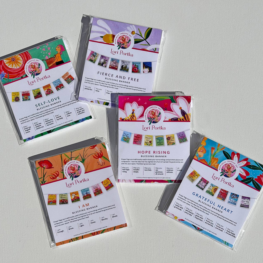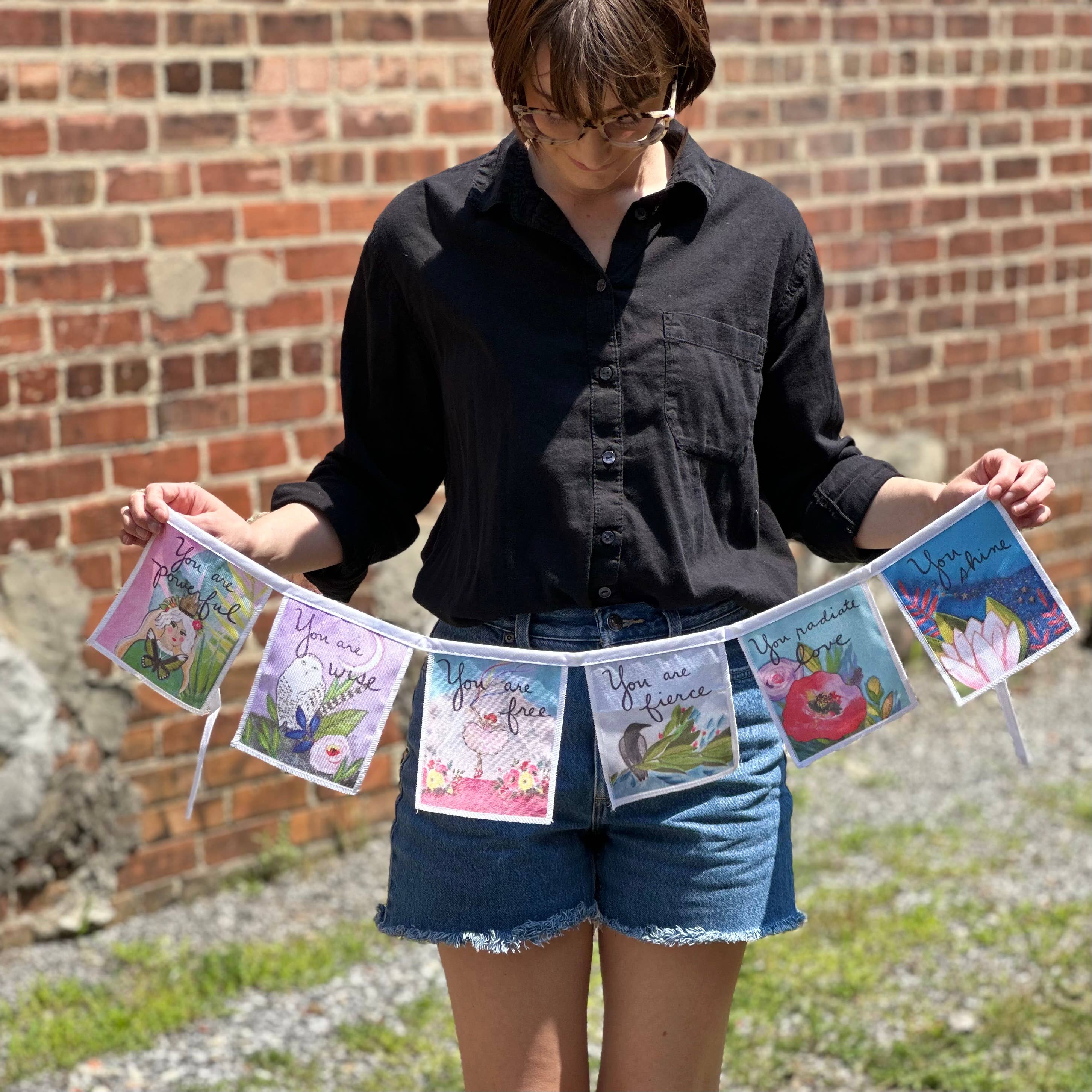 Our banners are inspired by Tibetan prayer flags that are traditionally used to bless your surroundings and promote peace and compassion. I love the idea that even the slightest bit of air will spread good wishes out and into your space.