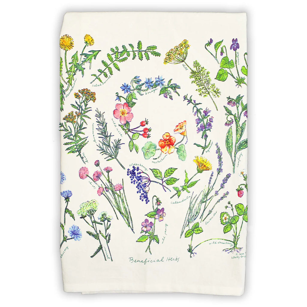 Bring sustainability and style to your kitchen with Cotton Tea Towel from Liberty Graphics, featuring nature-inspired designs printed with water-based ink for an environmentally friendly touch.