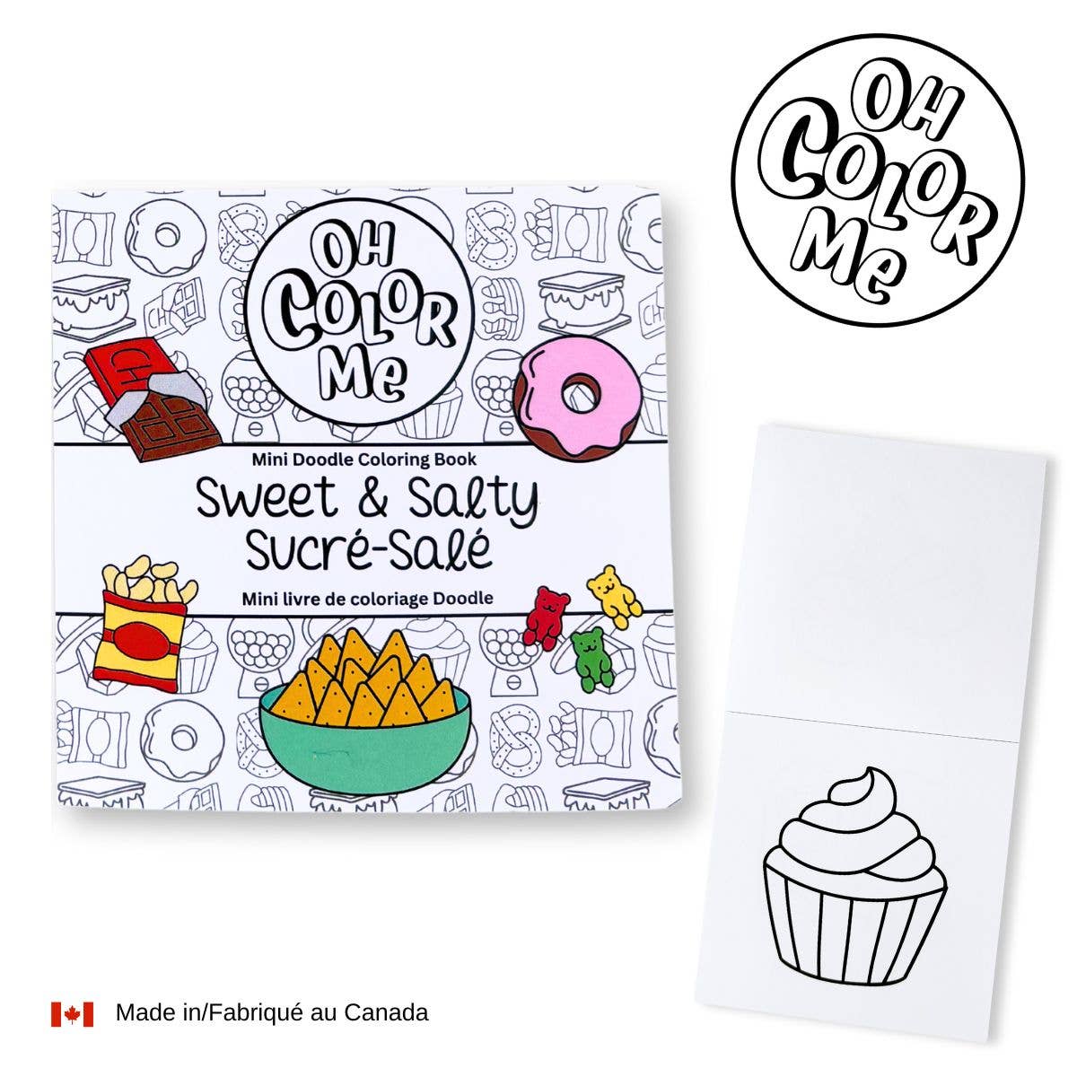 Mini Doodle Coloring Book Sweet & Salty is designed for both adults and kids. POCKET-SIZED - Perfectly sized for on-the-go creativity, this pocket-sized coloring book has 50 pages of simple designs with fun sweet & salty snacks. GRAB & GO - Compact and travel-friendly, these 4x4 inch pocket coloring books are perfect for your desk, purse, or school bag! Great for the grab & go section of your store or stocking stuffers. HIGH-QUALITY - Crafted with high-quality 100lb stock paper, it's ideal for use with crayons, colored pencils, or markers. The lay-flat binding makes it super easy to color. Made in Canada & locally sourced. Designed by a family-owned small business.