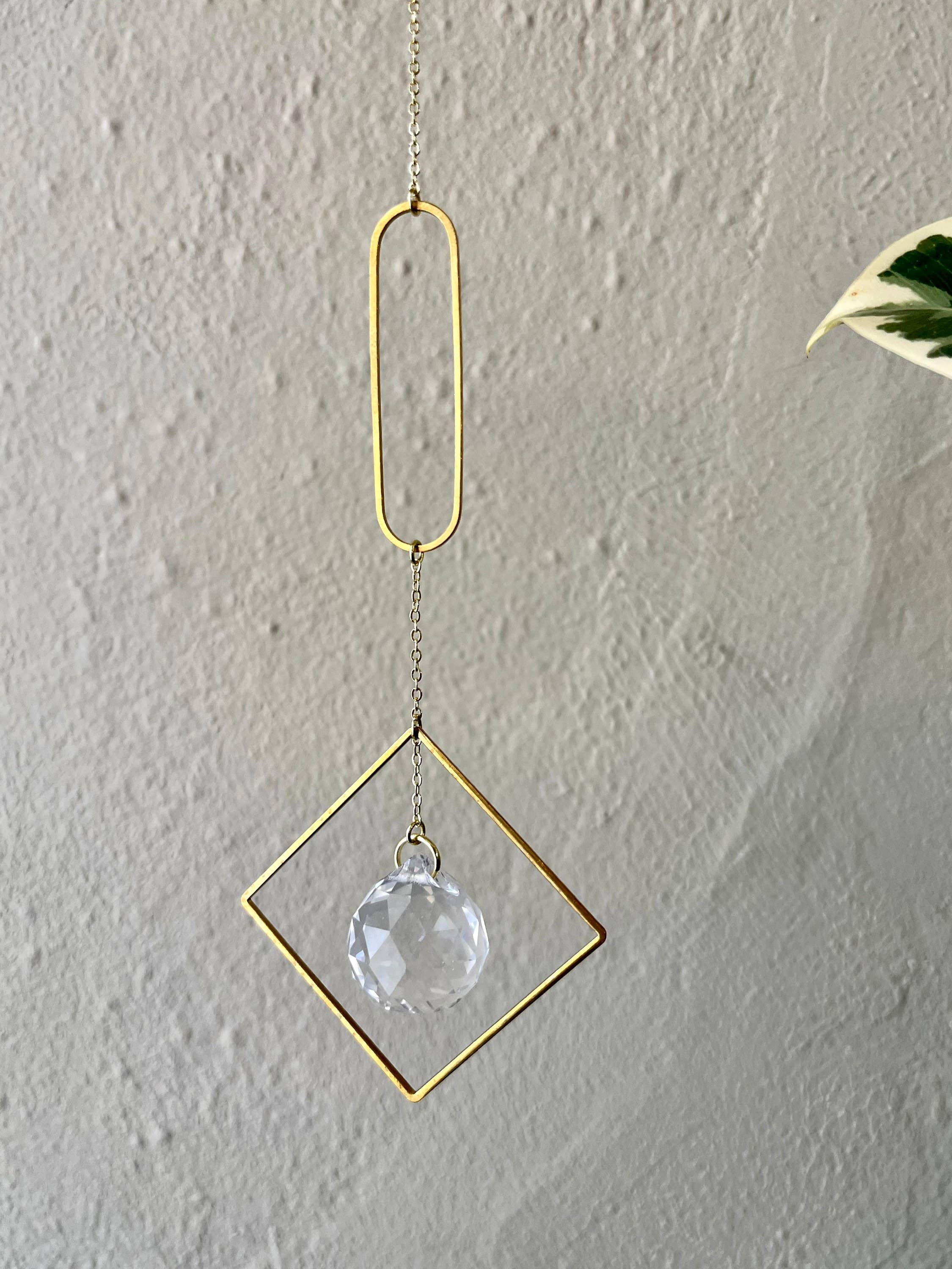 This sun catcher is made with genuine K9 glass crystal prisms (not acrylic),raw brass and 14K gold plated chain and jump rings.