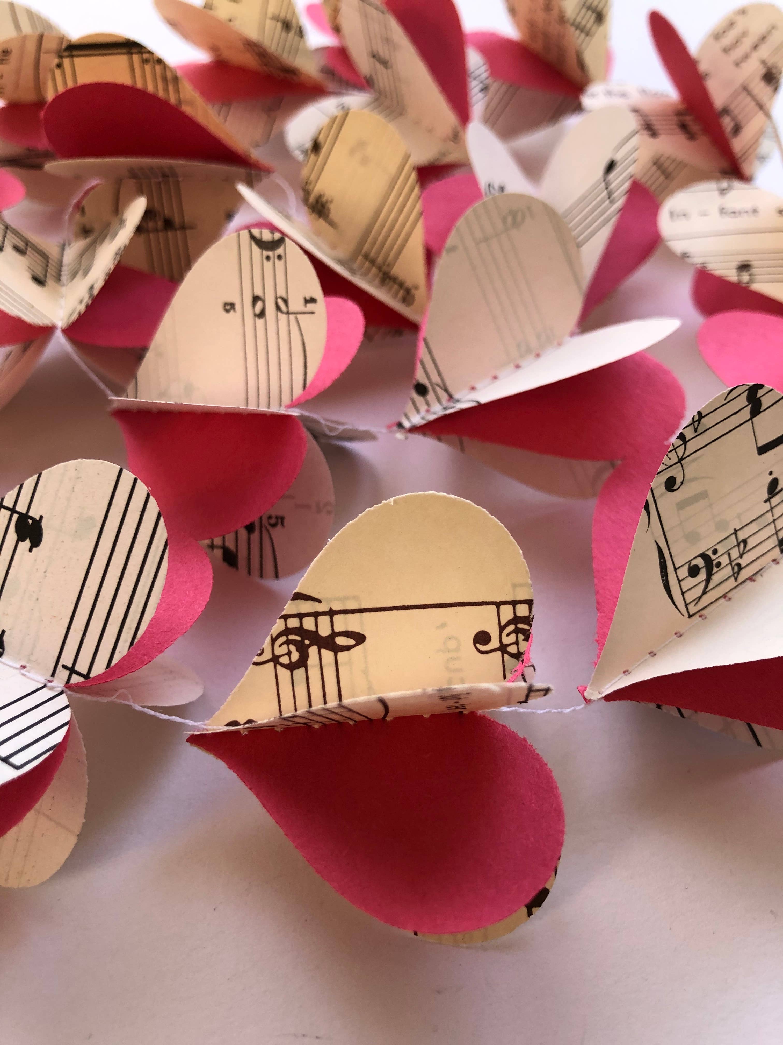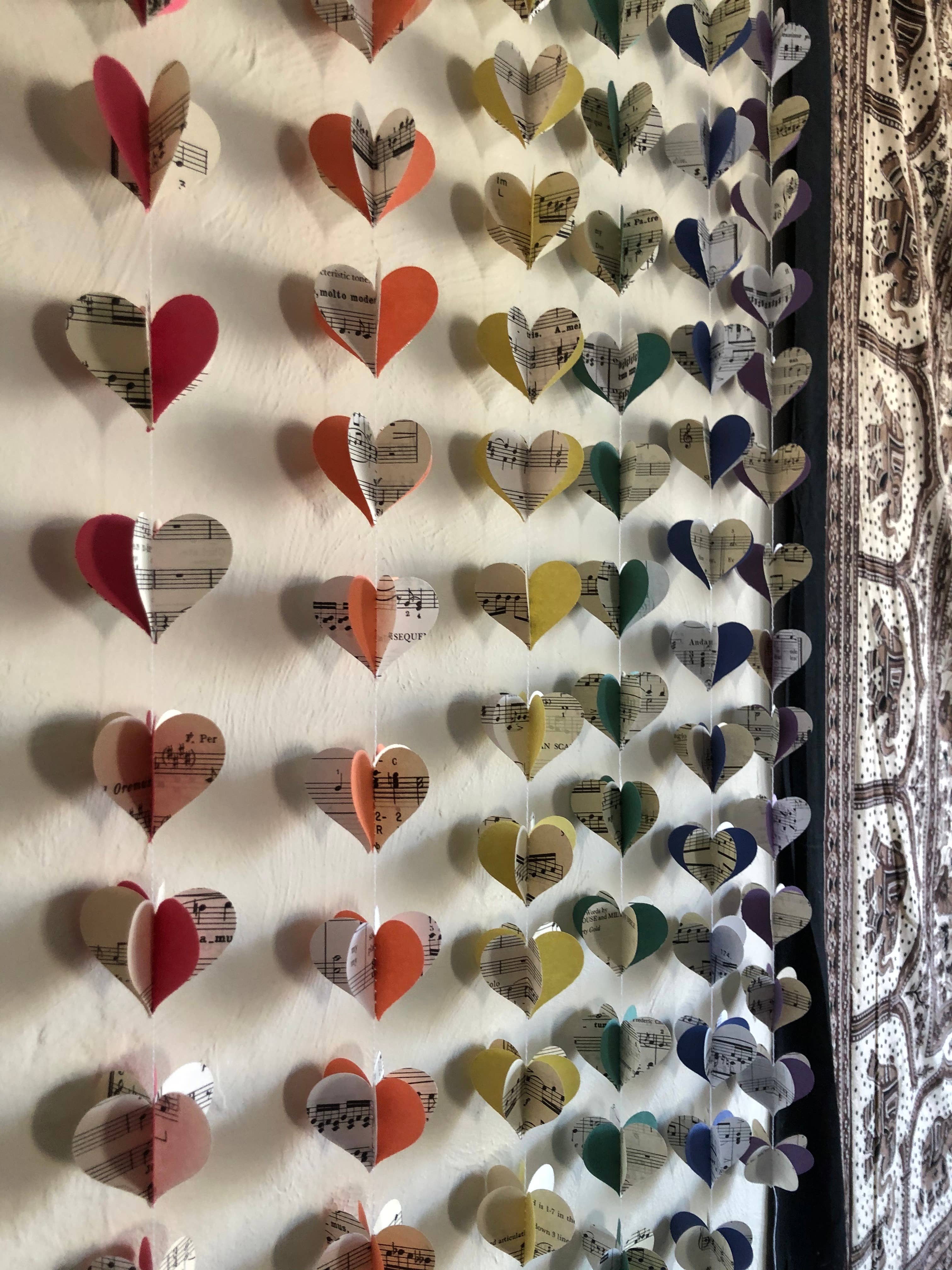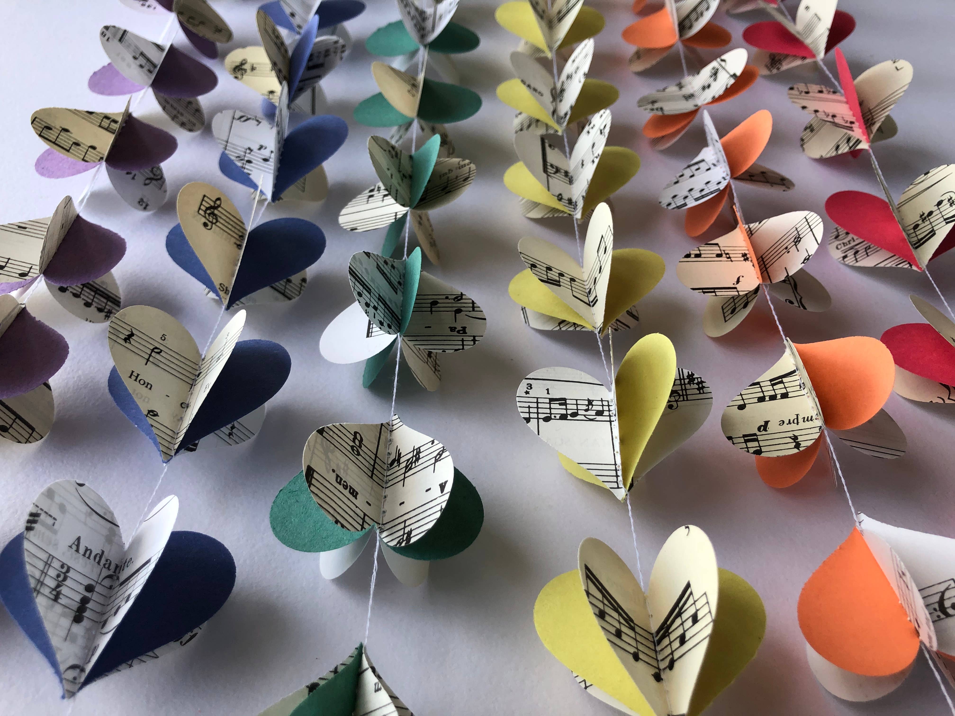 Vintage Sheet Music and Colorful Paper Heart Garlands ( provides 6 meals)