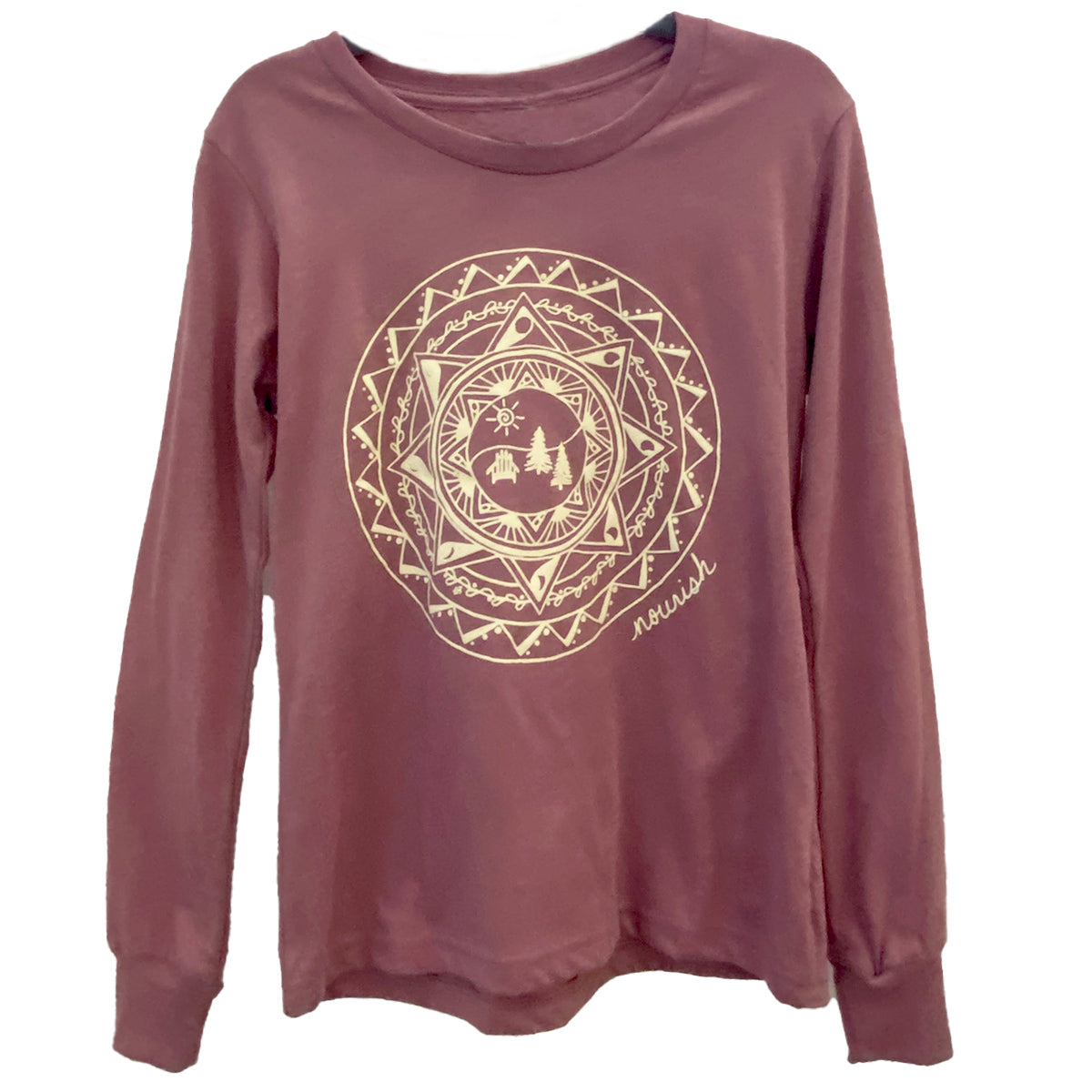 Youth Adirondack Mandala Long Sleeve T-Shirt Mauve (provides 8 meals)